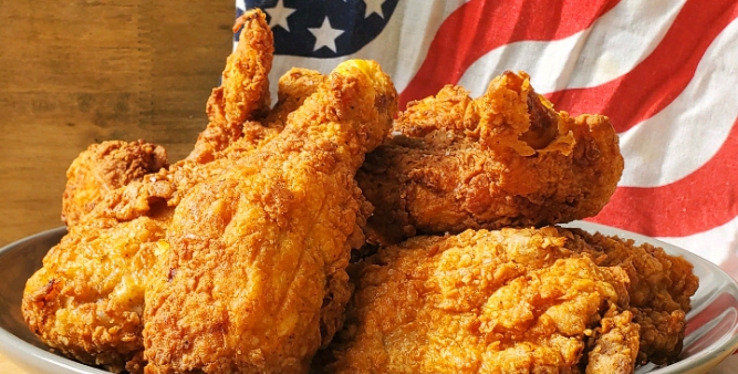 Ayam goreng Amerika menjadi salah satu ayam goreng paling populer di dunia. Ciri khasnya yaitu kulitnya dibalut dengan tepung tebal dan garing di luar. Dagingnya terasa matang dan sangat gurih.